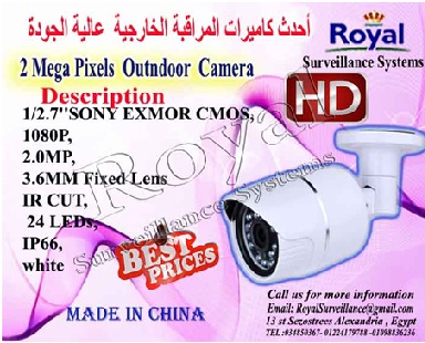 تتقدم شركة Royal Surveillance systems المتخصصة في جميع أنظمة الاتصالات و الأنظمة الأمنية ولديها خبراء متخصصون في تلك الأنظمةCommunication & Security & Control Systems عرض أحدث كاميرات مراقبة الخارجية ذات رؤية ليلية TV لتأمين و حماية المحلات و الفيلات و المصانع والصيدليات والعديد من مواقع العمل الخارجية و التى يمكن متابعتها عبر شبكة الانترنت و ذلك بأسعار منافسة و تخفيضات هائلة.
