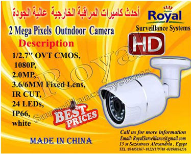 تتقدم شركة Royal Surveillance systems المتخصصة في جميع أنظمة الاتصالات و الأنظمة الأمنية ولديها خبراء متخصصون في تلك الأنظمةCommunication & Security & Control Systems عرض أحدث كاميرات مراقبة الخارجية ذات رؤية ليلية TV لتأمين و حماية المحلات و الفيلات و المصانع والصيدليات والعديد من مواقع العمل الخارجية و التى يمكن متابعتها عبر شبكة الانترنت و ذلك بأسعار منافسة و تخفيضات هائلة.
