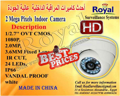 تتقدم شركة Royal Surveillance systems المتخصصة في جميع أنظمة الاتصالات و الأنظمة الأمنية ولديها خبراء متخصصون في تلك الأنظمةCommunication & Security & Control Systems عرض أحدث كاميرات مراقبة داخلية ذات رؤية ليلية لتأمين و حماية المحلات و الفيلات و المصانع والصيدليات والعديد من مواقع العمل الداخلية و التى يمكن متابعتها عبر شبكة الانترنت و ذلك بأسعار منافسة و تخفيضات هائلة.