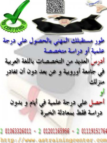 أحصل علي فرصة للدراسة عن بعد مع جامعة أوربية و أحصل علي الدكتوراة أو الماجستير أو البكالوريوس أو دبلومة باللغة العربية و دون أن تغادر منزلك