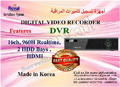 يسعد شركة Royal Surveillance systems المتخصصة في جميع أنظمة الاتصالات و الأنظمة الأمنية ولديها مهندسين متخصصون في تلك الأنظمةCommunication & Security & Control Systems بعرض أحدث أجهزة تسجيل كاميرات مراقبة داخلية و خارجية ذات جودة عالية لتأمين و حماية المحلات و الفيلات و المصانع والصيدليات والعديد من مواقع العمل و التى يمكن متابعتها عبر شبكة الانترنت و ذلك بأسعار منافسة.