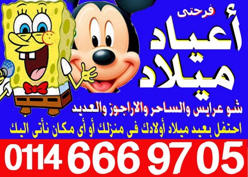 – أو بأى مكان تختارة لكل المناسبات (اعياد ميلاد -افراح -خطوبة -حجز فيلا لفرح – سبوع – افتتاح محلات – حفلات مدارس) ..نقدم لك العروض الأتية – شو عرايس واحدث ماسكات للاطفال _ ساحر _ اراجوز – مسابقات _ مهرج _ DJ_ رسم على الوجة و الايدى بالألوان -وبالاماكن المفتوحة نطاطةعملاقة و عربة ايس كريم وغزل بنات وفيشار – شو الحنه للعروسة _ الزفة – تصوير فيديو _تصوير فوتو _ فنون شعبية – وكلاء لفنانين مصر والعالم العربى- تخت شرقى _عواد – باند غربى – مطربين شبابى وشعبى – الات موسيقية كلاسيك لحفلات العشاء- ليزر واضاءة – عرض بالون – ديكورات وفرش الحفلات بمختلف الطرازات- نحن ننظم حفلاتك مهما كان حجمهاصغيرة أو كبيرة. فقط اتصل واستعلم عن ما تحتاجة فقط من العروض السابقة 01146669705