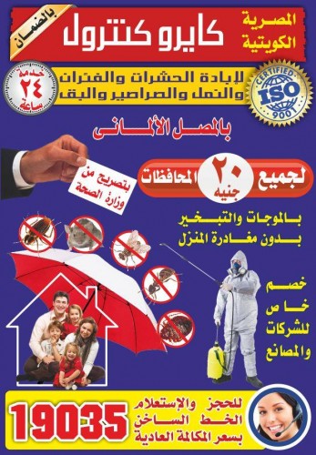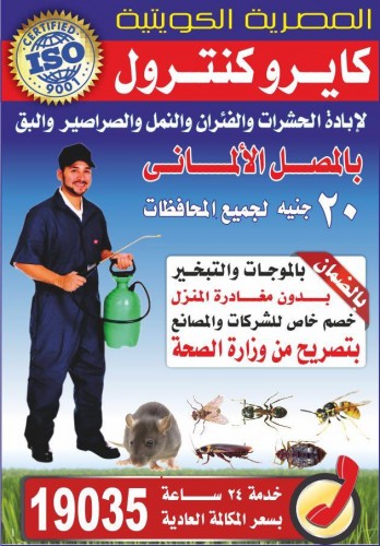 ابادة الحشرات بدون ازالة الاواني وبدون مغادرة المنزل بالضمان بالمصل الالماني بالتبخير للفئران والنمل والصراصير والبق والبراغيث والقوارض والحشرات الضارة بادر بالاتصال 19035 – 01200044572 خدمة24ساعة
