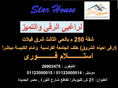 شقة استلام فورى – بالحى الثالث غرب فيلات