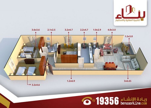 3 نوم – 2 حمام – تراس – مطبخ – رسبشن 3 قطع