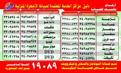 - صيانة جميع انواع الاجهزه المنزليه ت:19089 – 01000081192 -01000081193