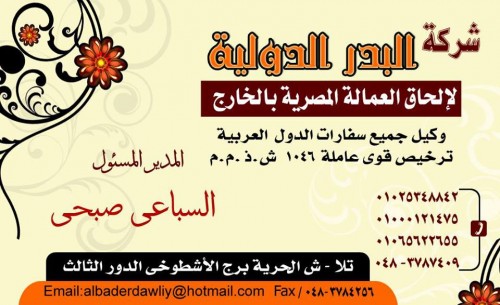 الرجاء ارسال الاوراق الاتية على ايميل شركة البدر الدولية للتوظيف الكفاءات والخبرات المصرية بالخارج ترخيص1046قوى عاملة شركات