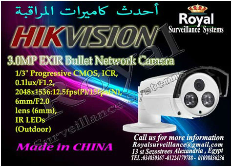 تتشرف شركة Royal Surveillance systems المتخصصة في جميع أنظمة الاتصالات و الأنظمة الأمنية ولديها خبراء متخصصون في تلك الأنظمةCommunication & Security & Control Systems بعرض كاميرات مراقبة داخلية IP ماركة HIKVISION بدرجة وضوح صورة MP3