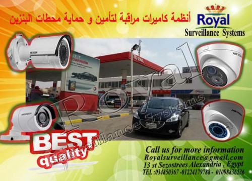 يشرف شركة Royal Surveillance systems المتخصصة في جميع أنظمة الاتصالات و الأنظمة الأمنية ولديها مهندسين متخصصون في تلك الأنظمةCommunication & Security & Control Systems بعرض أحدث كاميرات مراقبة داخلية و الخارجية ذات رؤية بجودة عالية لتأمين محطات الوقود و التى يمكن متابعتها عبر شبكة الانترنت و ذلك بأسعار منافسة.
