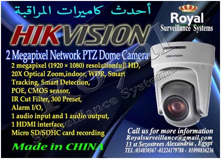 تتشرف شركة Royal Surveillance systems المتخصصة في جميع أنظمة الاتصالات و الأنظمة الأمنية ولديها خبراء متخصصون في تلك الأنظمةCommunication & Security & Control Systems بعرض كاميرات مراقبة داخلية IP ماركة HIKVISION بدرجة وضوح صورة MP 2