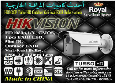 يشرف شركة Royal Surveillance systems المتخصصة في جميع أنظمة الاتصالات و الأنظمة الأمنية ولديها مهندسين متخصصون في تلك الأنظمةCommunication & Security & Control Systems بعرض أحدث كاميرات مراقبة خارجية ذات رؤية بجودة عالية لتأمين و حماية المحلات و الفيلات و المصانع والصيدليات والعديد من مواقع العمل الخارجية و التى يمكن متابعتها عبر شبكة الانترنت و ذلك بأسعار منافسة.