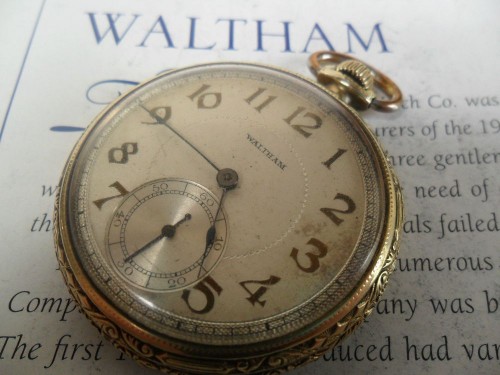 لهواة التميز والساعات الراقية، ساعة جيب أثرية موديل سنة 1926 تعمل بكفاءة، 1926 Vintage Waltham 17J Size 12 14k Gold Filled Pocket Watch ، الجسم من الذهب المضغوط علي المعدن عيار 14 قيراط، 17 حجر، وقطر الساعة 44.3 مم دون ذراع الملئ، ويمكن معايرتها، ووجه الساعة أصلي في حالة جيدة والزجاج في حالة ممتازة وليس بها خدوش، ومعها العلبة الخاصة بها مكسوة بقماش القطيفة الزرقاء.