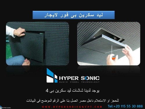 يوجد لدينا شاشات ليد سكرين بى 4 …للحجز او الاستعلام داخل مصر اتصل بنا على الرقم الموضح فى البيانات.